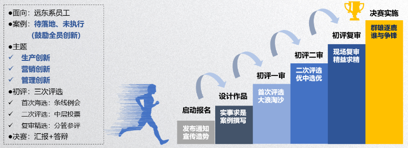 在远东,人人关注创新,人人愿意创新。多年来,公司内部一直在营造创新环境,努力提升员工创新能力。设计创新案例竞赛的目标是希望通过“提炼问题、分析问题、解决问题、助推经营管理”四个核心维度,每年选拔出一些优质案例,帮助企业创新变革。