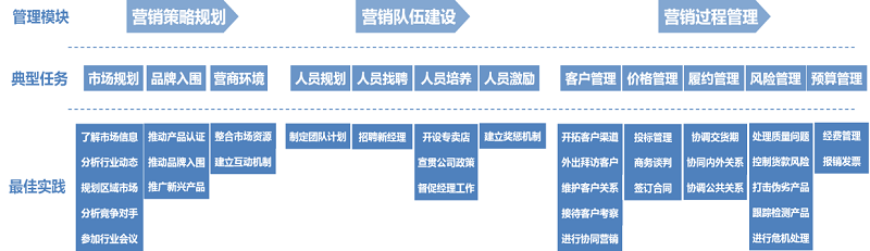 后备课程体系:以营销管理者岗位为原型,梳理典型任务,明确最佳实践,设计成套课程体系。
