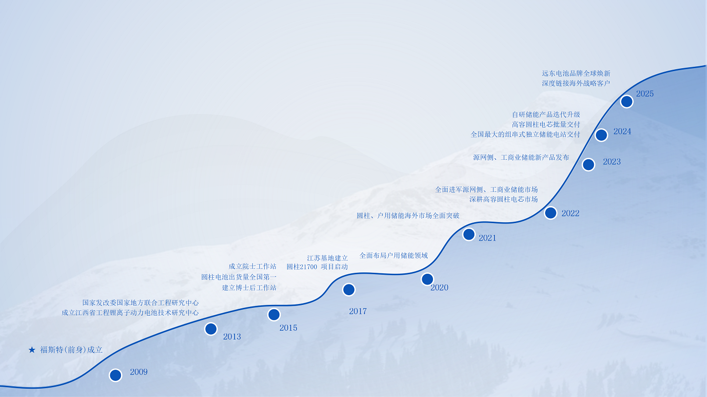 远东电池创立于2009年,是远东股份(股票代码:600869)旗下子公司。远东电池深耕新能源领域,是一家集研发、生产、销售于一体的全球化电池及储能系统服务商。公司实现从电芯到储能系统的全线布局,致力于为全球客户提供安全、可靠、可持续的储能及智慧能源管理服务,场景覆盖源网侧、工商业及户用。 远东电池以“共建共享安全 绿色 美好生活”为使命,持续探索储能技术边界,助力全球碳中和目标,致力于成为世界领先的电池及储能系统服务商。